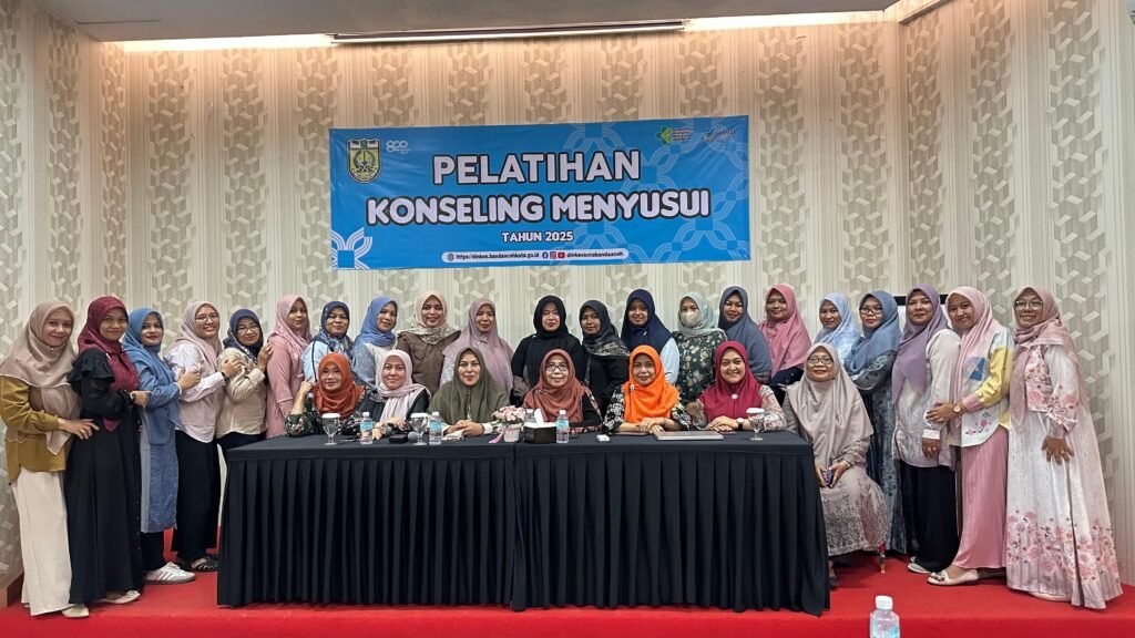 Banda Aceh, 19–23 Mei 2025 — Dinas Kesehatan Aceh Besar bekerja sama dengan Unit Pengembangan Kompetensi Sumber Daya Manusia Kesehatan Aceh (UPK SDMK Aceh) telah sukses menyelenggarakan Pelatihan Konseling Menyusui yang berlangsung selama lima hari di Seventeen Hotel, Kota Banda Aceh. Kegiatan ini diikuti oleh tenaga kesehatan dari puskesmas di wilayah Kota Banda Aceh.
