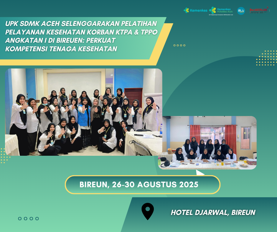 Bireuen, 26–30 Agustus 2025 — Unit Pengembangan Kompetensi Sumber Daya Manusia Kesehatan Aceh (UPK SDMK Aceh) bekerja sama dengan Dinas Kesehatan Kabupaten Bireuen sukses menyelenggarakan Pelatihan Pelayanan Kesehatan bagi Korban Kekerasan Terhadap Perempuan dan Anak (KTPA) serta Tindak Pidana Perdagangan Read More …