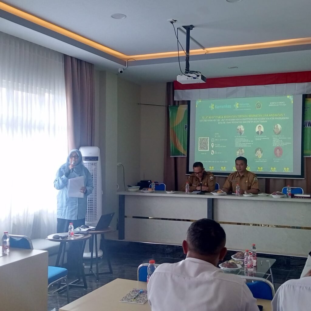 Aceh Tengah, 25–30 Agustus 2025 — Unit Pengembangan Kompetensi Sumber Daya Manusia Kesehatan Aceh (UPK SDMK Aceh) bekerja sama dengan Dinas Kesehatan Kabupaten Aceh Tengah sukses menyelenggarakan Pelatihan Tenaga Kesehatan Terpadu Kesehatan Jiwa Angkatan I bertempat di Hotel Mabit, Aceh Tengah.