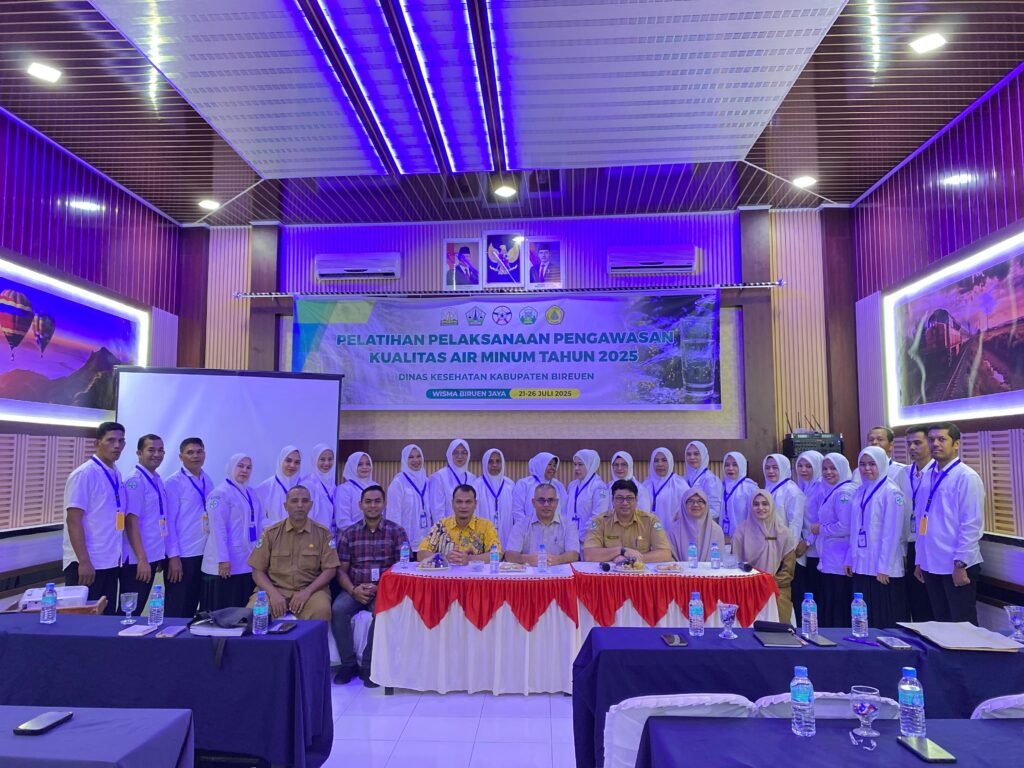 Bireuen, Aceh — Upaya mewujudkan layanan kesehatan lingkungan yang lebih kuat terus dilakukan oleh Unit Pengembangan Kompetensi SDM Kesehatan (UPK SDMK) Aceh. Salah satu langkah nyata diwujudkan melalui Pelatihan Pelaksanaan Pengawasan Kualitas Air Minum Angkatan I, yang berlangsung pada 9–12 September 2025 di Wisma Bireuen Jaya, Kabupaten Bireuen.